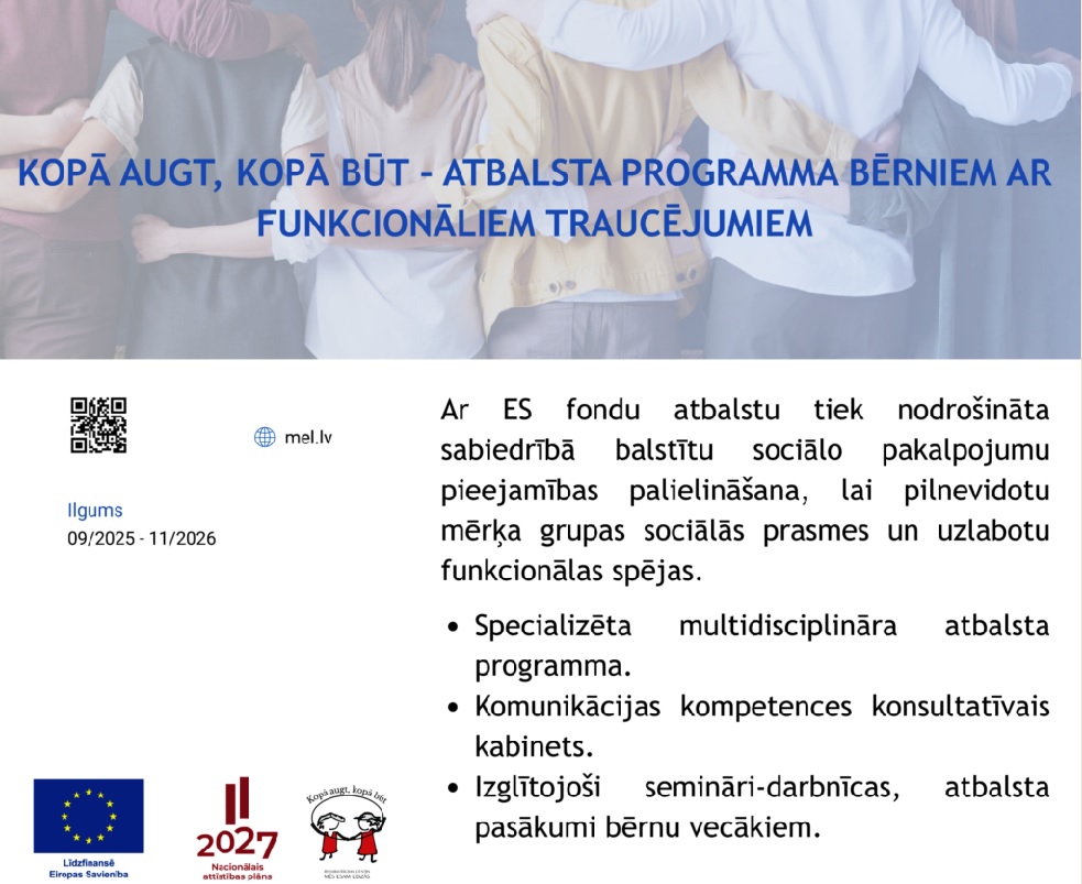 ESF projekts “Mēs esam līdzās bērniem ar funkcionēšanas traucējumiem” Nr.9.2.2.3/20/A/012